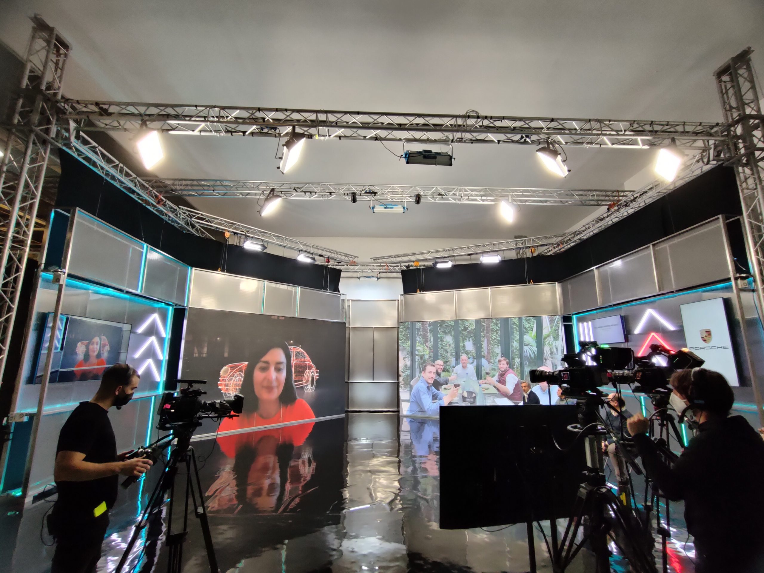 Dentro de los espacios para eventos Madrid, enbextudio es un auténtico plató de televisión que ofrece infinitas posibilidades con material especializado y de última generación. El plató de TV en Madrid está en el top de los espacios de la capital celebrar eventos de todo tipo combinando la parte online y presencial, sacando el máximo partido a ambos formatos.